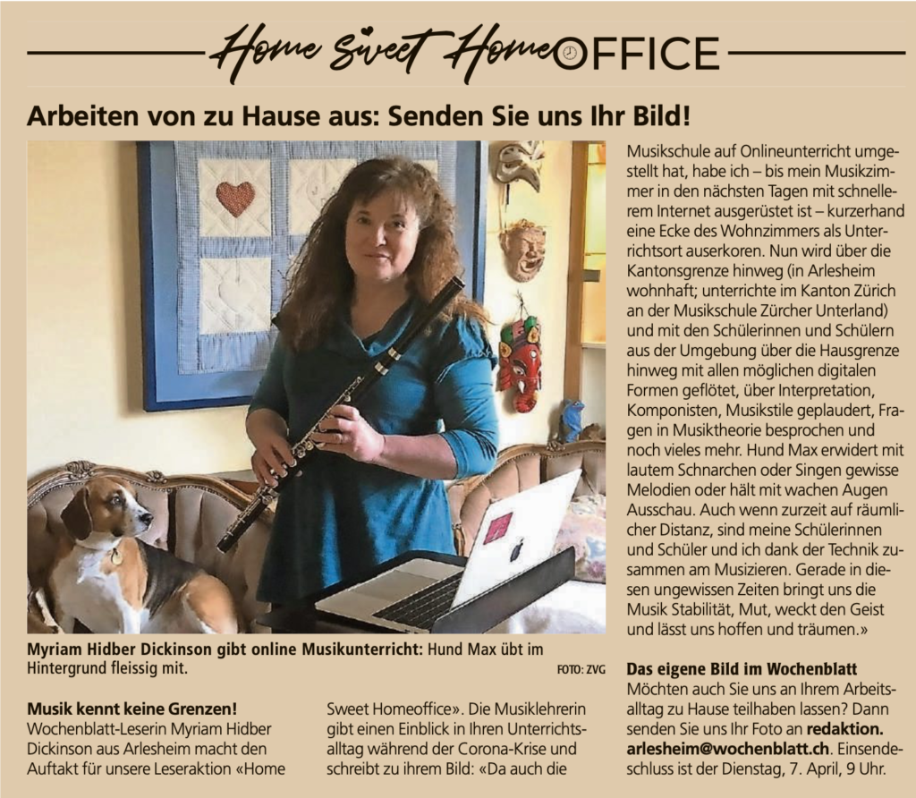 Artikel zum Musikalischen Home Office von Miss Flute im Wochenblatt: